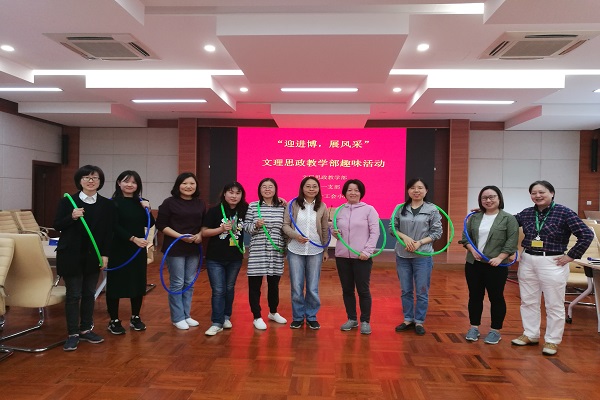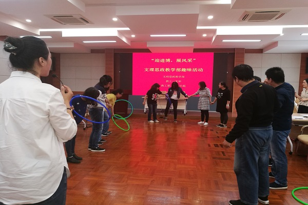 第二个环节是“团结风采”趣味活动。活动内容分别是“腰精争霸”和“一圈到底”,所有教师以教研室为单位参加比赛。比赛中老师们各显身手,一改往日的严谨,尽情享受着趣味活动带来的乐趣和快乐。老师们不以胜负为意,通过集体的互动项目,展现文理人相互协作,用于竞争的风采。