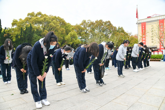 伴随着雄壮的中华人民共和国国歌,全体师生在镌刻着“浩气长存”的花岗岩主题雕塑前整齐列队、庄严肃静。怀着对革命先烈的崇高敬意,学生代表向英烈敬献花圈,全体师生默哀三分钟并鞠躬,对革命先烈表达深切的缅怀。