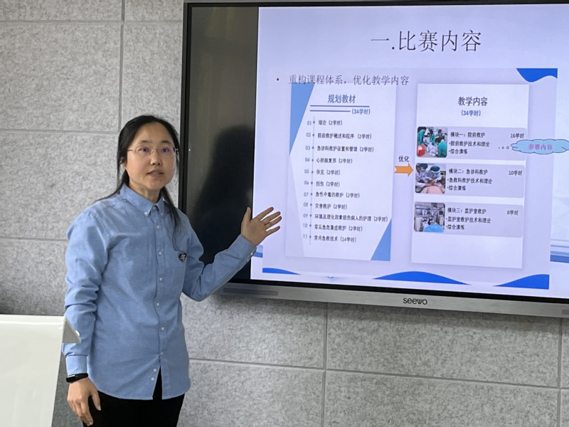 2023年上海市中等职业学校教师教学能力比赛的脚步临近,为更好打磨参赛作品,学校于4月23日组织文理思政教学部语文教学团队和护理系急救护理教学团队开展备赛研讨,研讨会由质量管理与教学建设中心主任陈碧英主持。