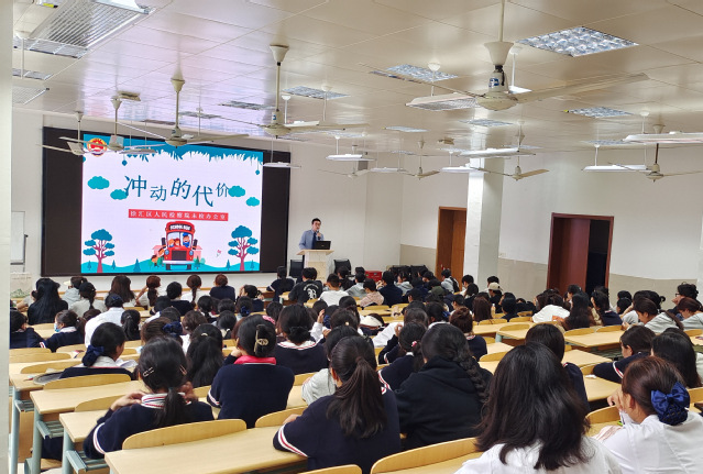 裴老师结合丰富的真实案例与学生互动,从“以案释法,冲动犯罪的代价”、“克制冲动情绪,避免不良后果”、“加强自我控制和管理,远离犯罪”三方面进行详细解读,引导同学们增强法治观念、提高法律的意识,避免误入违法犯罪歧途,教育同学们要学会用法律武器保护自己。