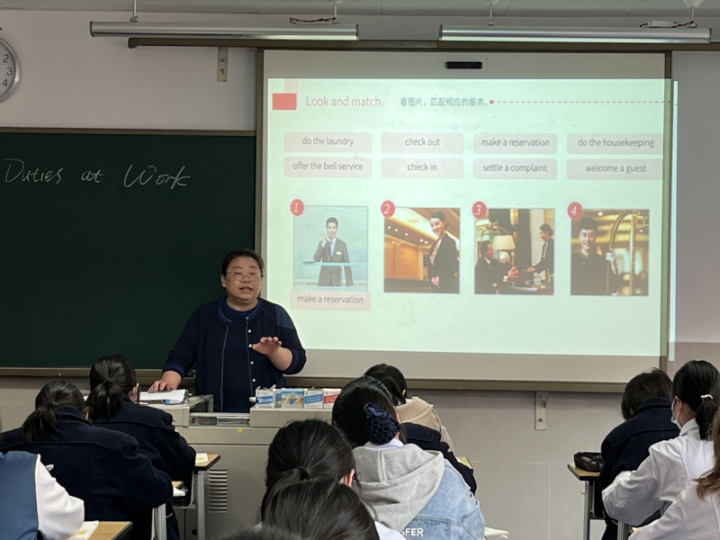 本次公开课展示活动从文理思政教学部刘娜老师的“Duties at work”拉开序幕,学生跟着刘娜老师的课堂练习,既掌握了目标词汇、发音规范,又能够运用到具体岗位情境中。