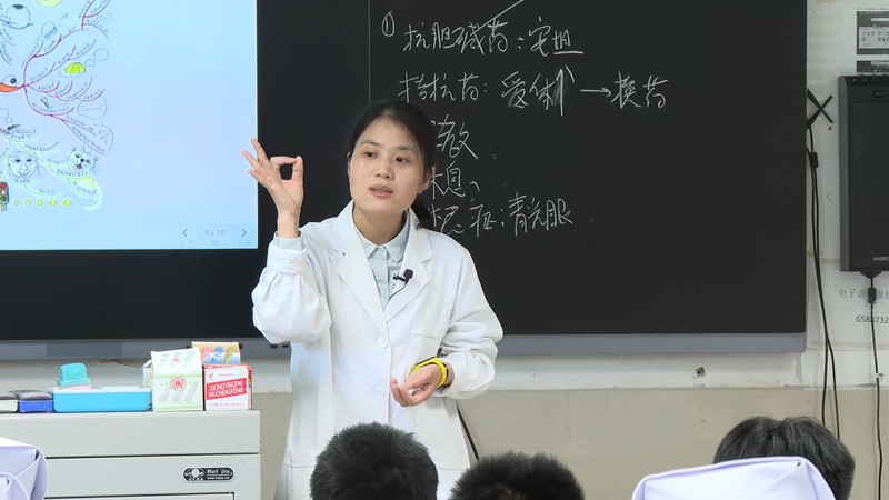 医学基础教学部刘秋芳老师以出色的板书向学生展示“抗精神失常药”的课程框架、课程重难点,以及课程内容同岗位的衔接度;同时采用多媒体辅助教学的方式,充分展示教学风采,学生积极参与,主动发言,课堂气氛活跃。
