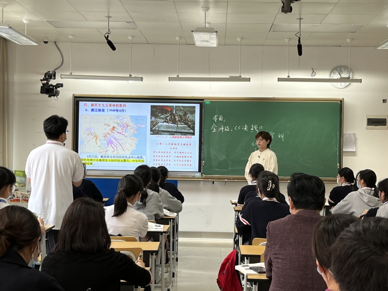 教务科王子寅老师以“人民解放战争”为主题,剖析了全面内战的爆发及人民解放战争的进程,教学逻辑严谨,使学生容易掌握教学重点和难点;引导学生分析和解决问题,帮助学生从史料中提取学习和探究历史问题的有效信息。