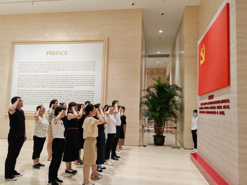 为深入开展学习贯彻习近平新时代中国特色社会主义思想主题教育,迎接建党102周年,助力党支部党员提升党性修养,传承红色基因,赓续红色血脉,7月1日,教工第一党支部赴中共一大纪念馆开展主题党日活动,参观《伟大的开端——中国共产党创建历史陈列》展览,进一步认识中国共产党的发展历程,感悟伟大的建党精神,从中汲取不竭的精神动力。