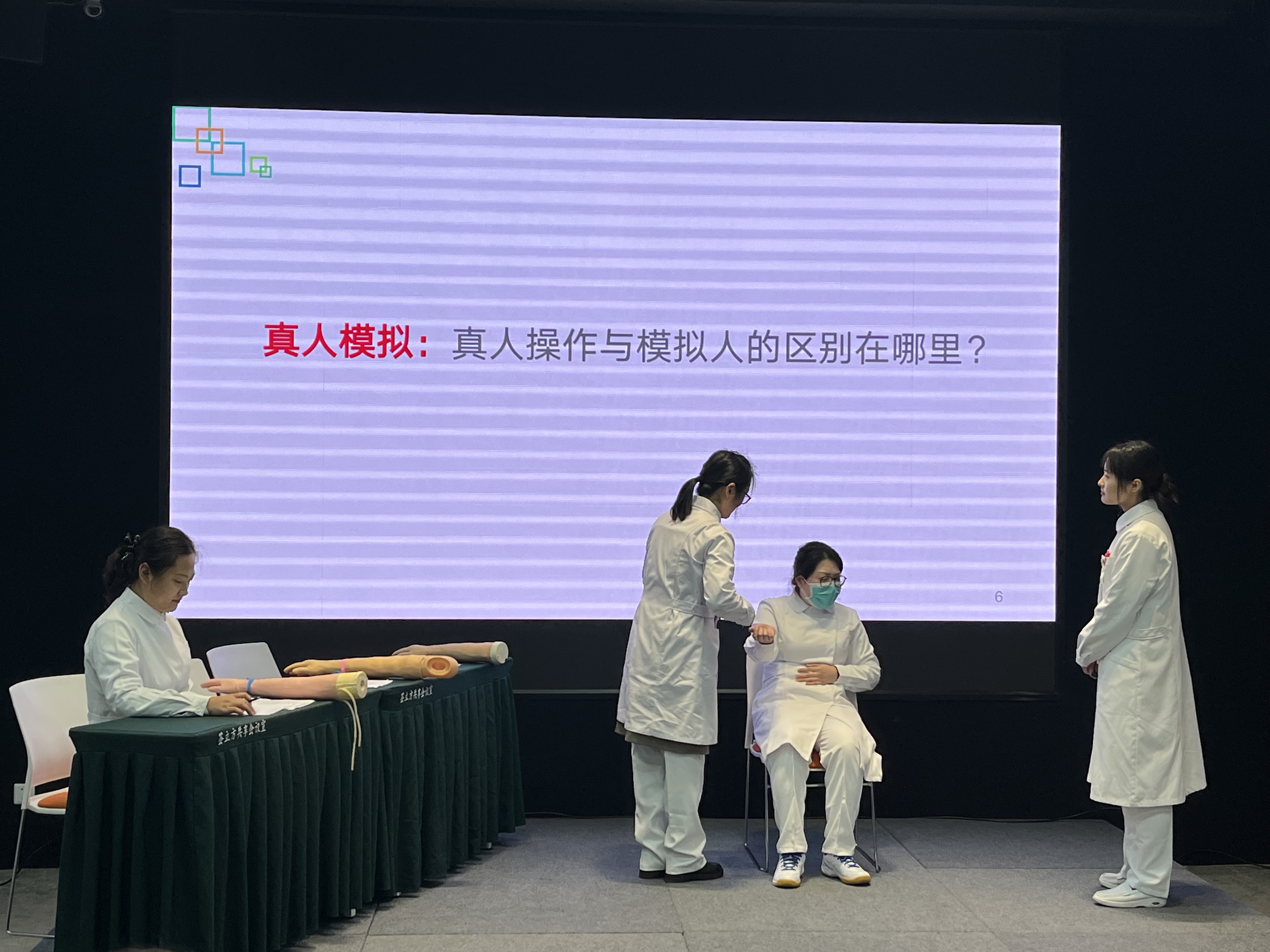 本次交流活动中,新教师们自发组队、精心策划,以模拟课堂、教学教研活动、情景剧、知识竞答和学习心得汇报的形式进行交流分享。模拟课堂“止血带,你学‘废’了吗”聚焦实践操作难点,融入课程思政元素,反映护理人文关怀,体现学生本位、“做中学”的教育理念;集体备课“教研致远,合力共进”就课题的教学设计展开研讨,优化教学策略,提高课堂教学质量;情景剧“用心沟通,和谐对话”展示了使用非暴力沟通技巧有利于建立和谐的师生、生生关系和未来学生将面对的护患关系;“知识竞答”回顾培训内容,巩固了教学基本理论知识;学习心得汇报分享了老师们在学习中取得的进步和在反思中获得的成长,并对健康护理职业教育教学进行了思考。