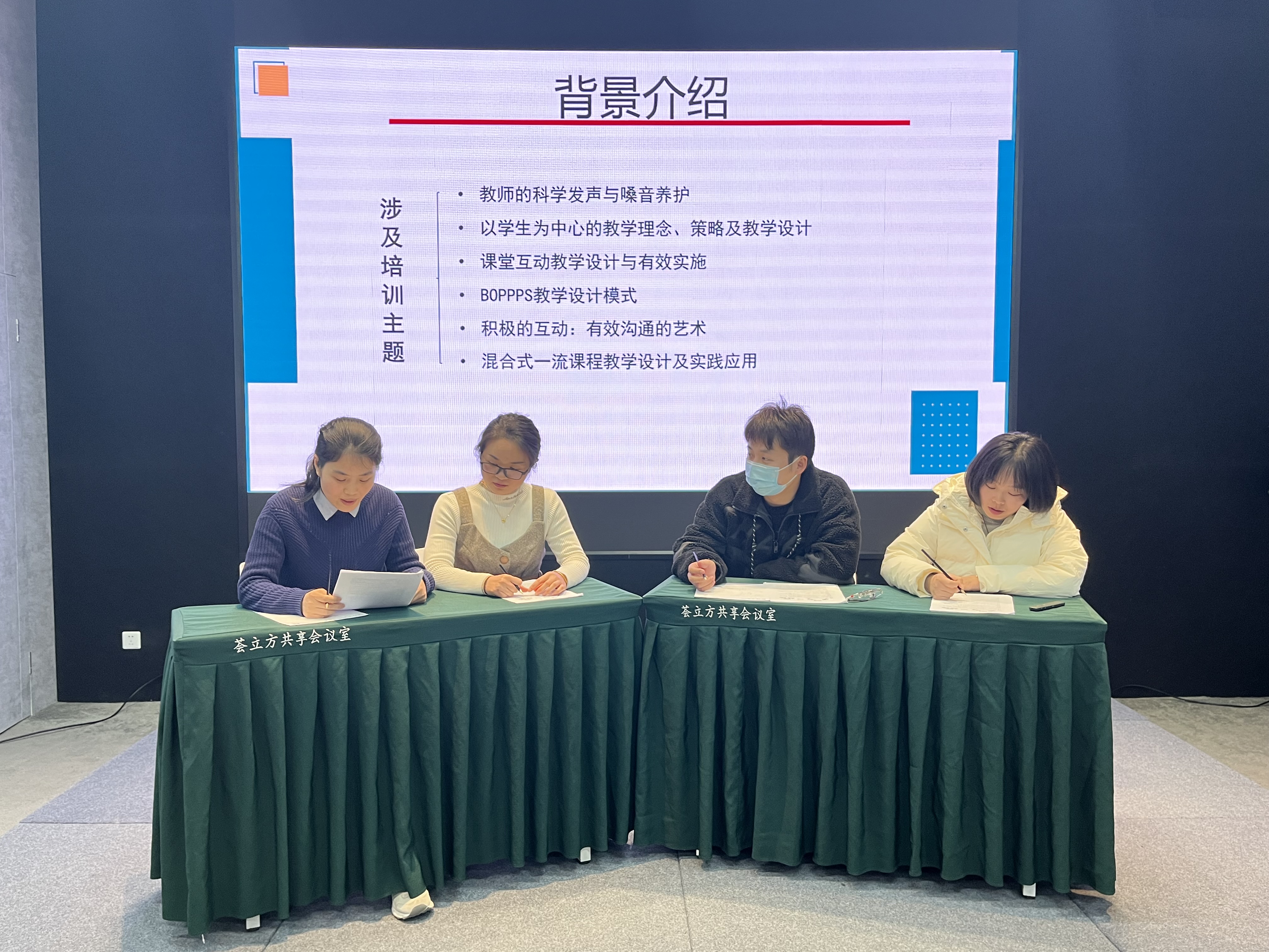 本学期为帮助新教师迈好职业第一步,学校实施新教师教学能力提升专项培训。培训以讲座、工作坊、案例分析和综合实践等形式开展,涵盖教师形象与语言提升、教学设计与反思能力提升两大模块,包括教师的科学发声与嗓音养护、BOPPPS教学设计模式和有效沟通的艺术等内容。新教师们通过学习进一步明确教育职责,扎实教学基本功。