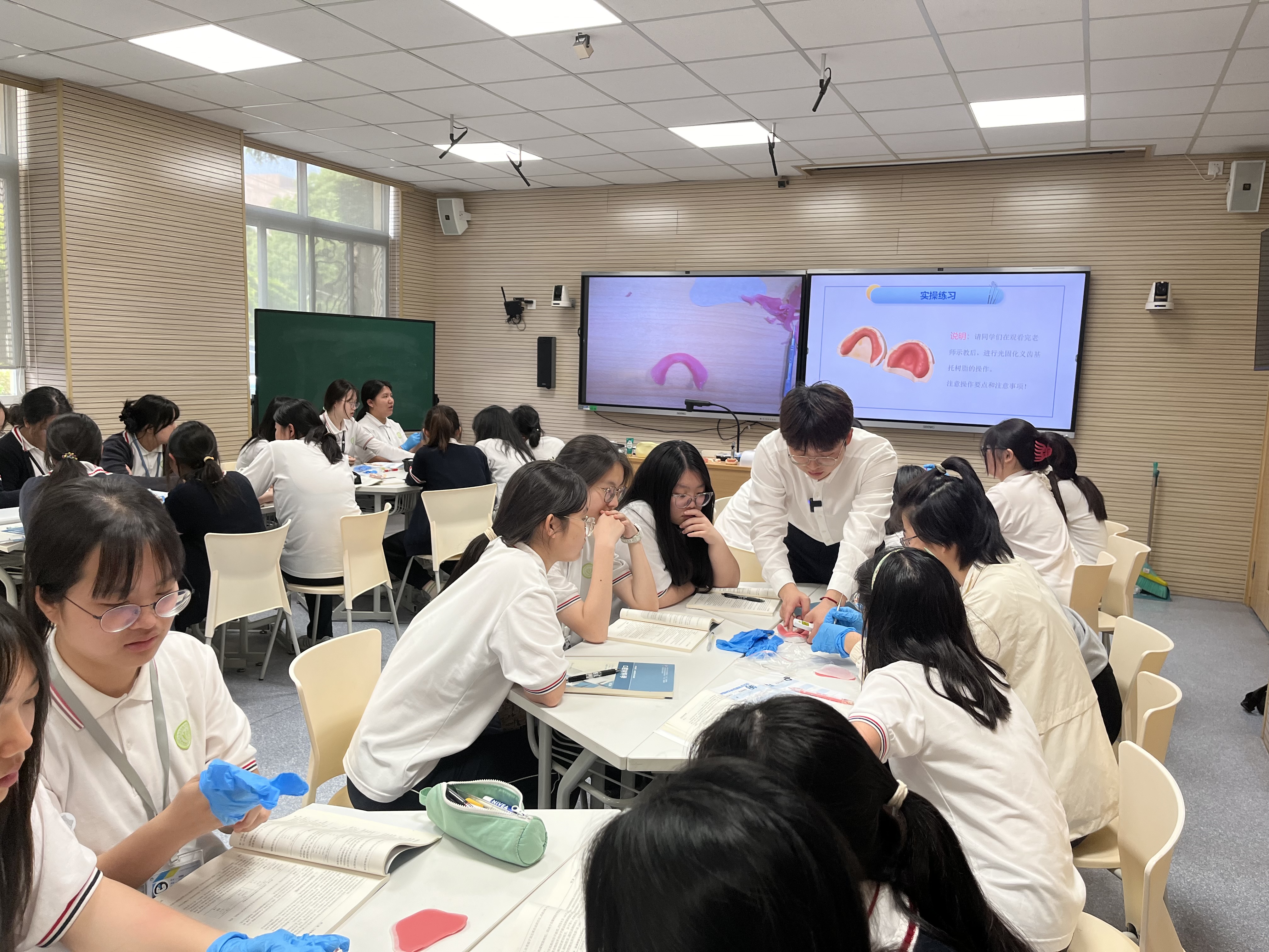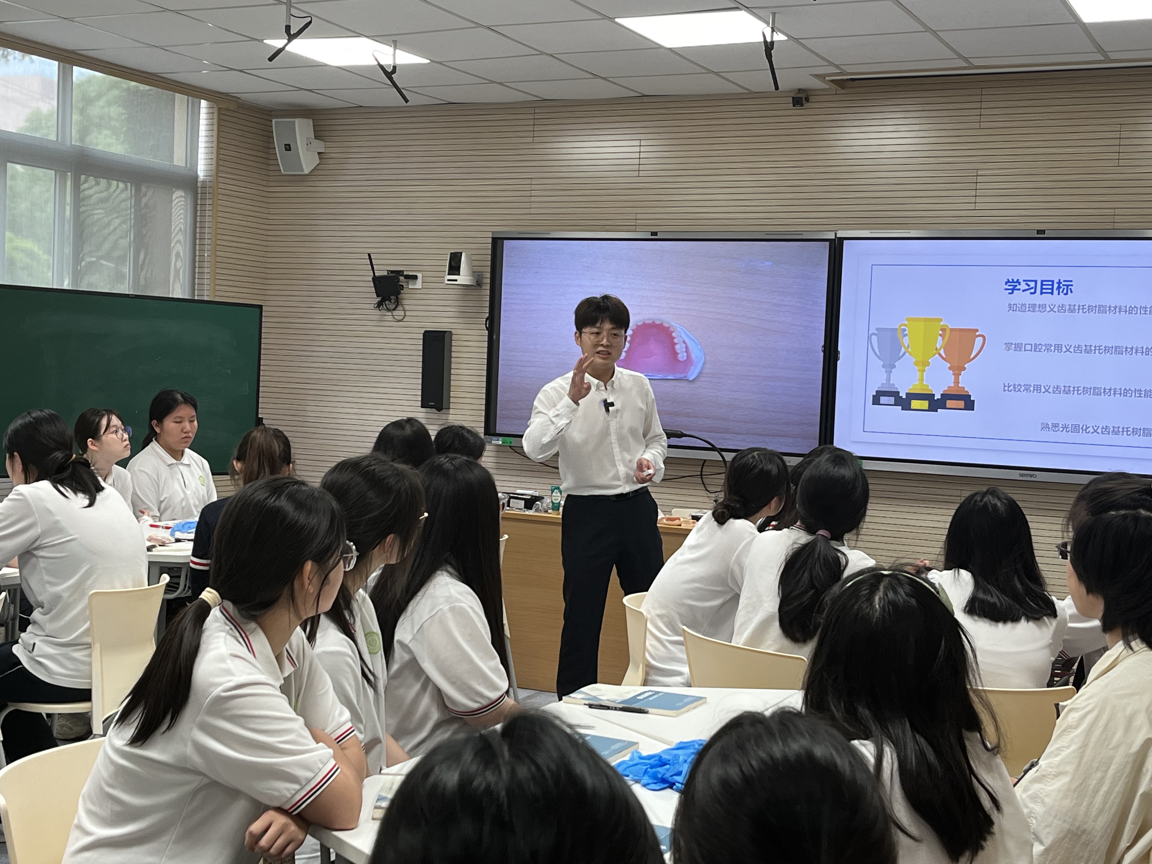 校级课程思政示范课程培育项目的团队成员赵成旺老师以“树脂材料”为主题,详细讲解了三种口腔常用树脂材料的性能特点,并以视频的方式展示了其在临床的实际应用,在增加课程趣味性的同时,帮助学生加深口腔修复知识理解,培养学生的临床思维能力;利用口腔模型进行细致地示范教学,对操作手法和相关注意事项进行讲解,强调精湛的技术和敬业的态度。学生以小组讨论的形式,根据不同应用场景对应选择不同的树脂材料,锻炼辩证思维能力;完成光固化义齿基托树脂的现场操作,深刻感受材料的特点,并以严谨细致的工作态度严格要求自己。
