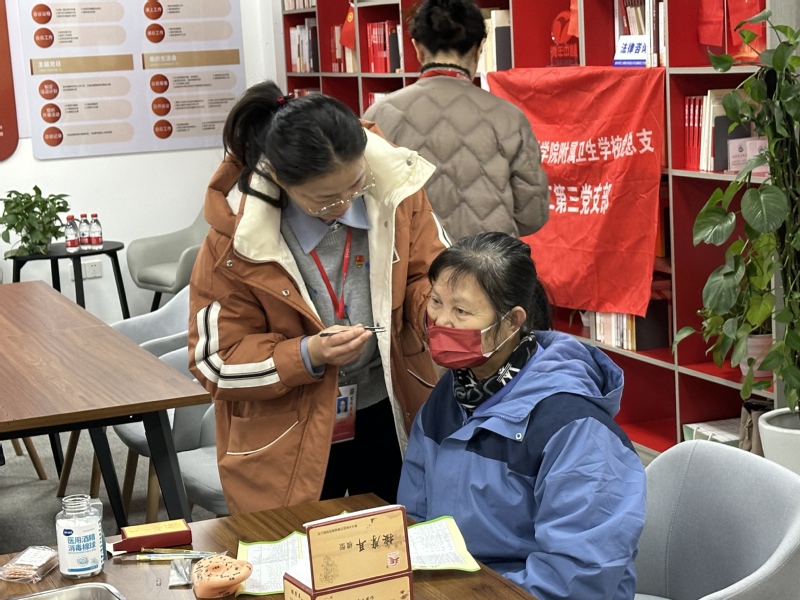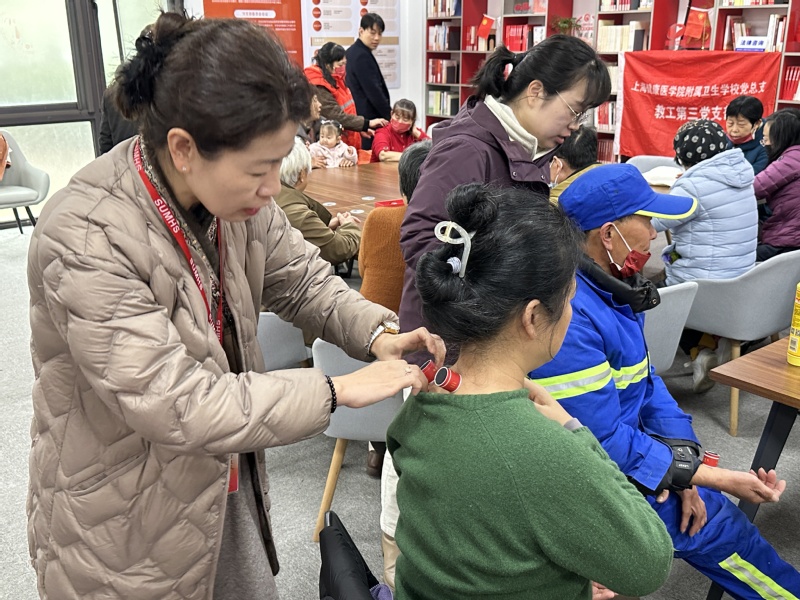 为传承和弘扬雷锋精神,践行党员的社会责任与担当,3月5日上午,我校教工第三党支部五位党员老师前往耀华滨江第一居民区党群服务站,参加了以“点亮雷锋精神,照亮志愿之路”为主题的三·五学雷锋志愿服务活动。此次活动旨在弘扬雷锋精神,将健康与关爱带入社区,为居民提供中医养生保健服务。