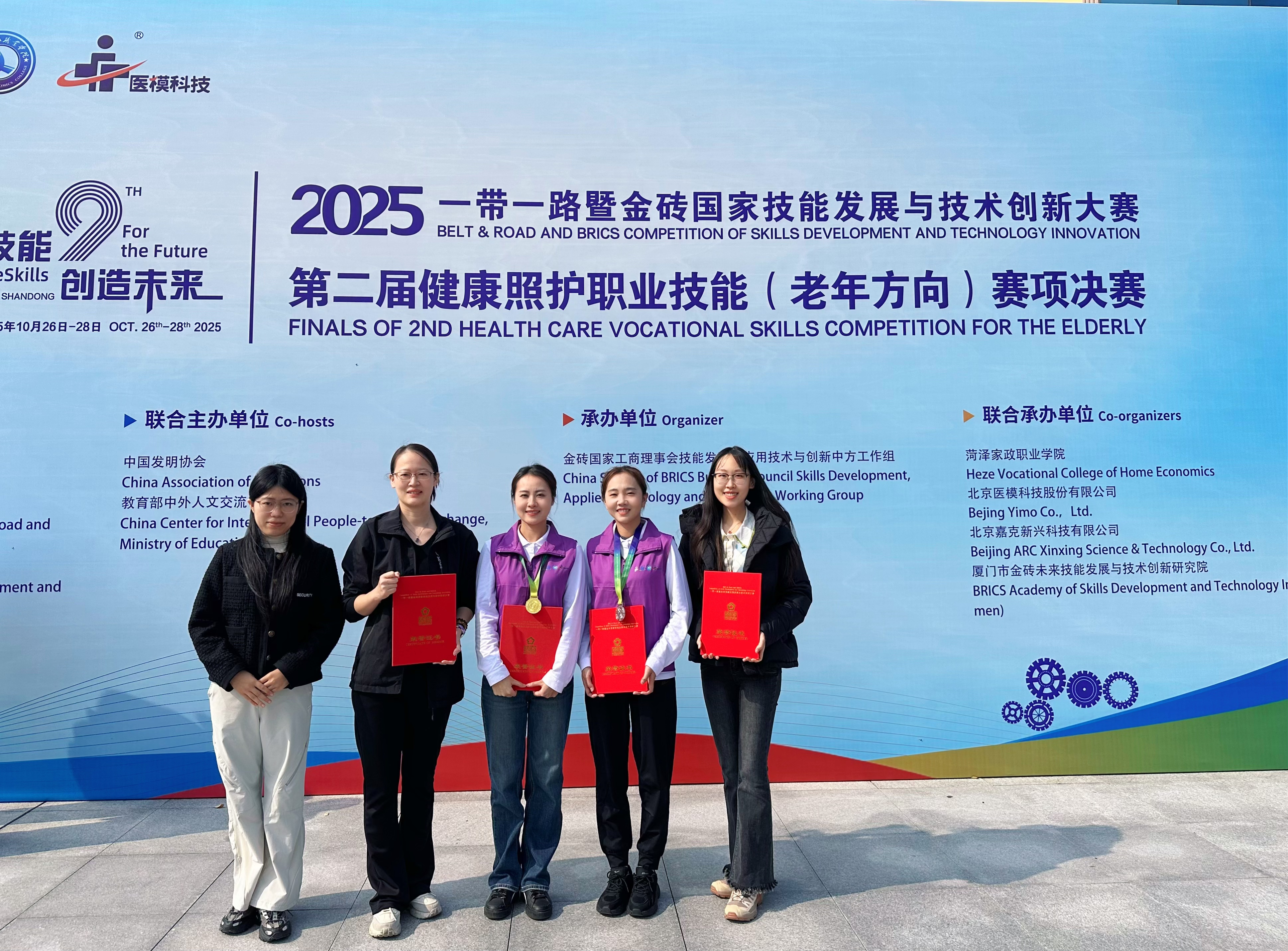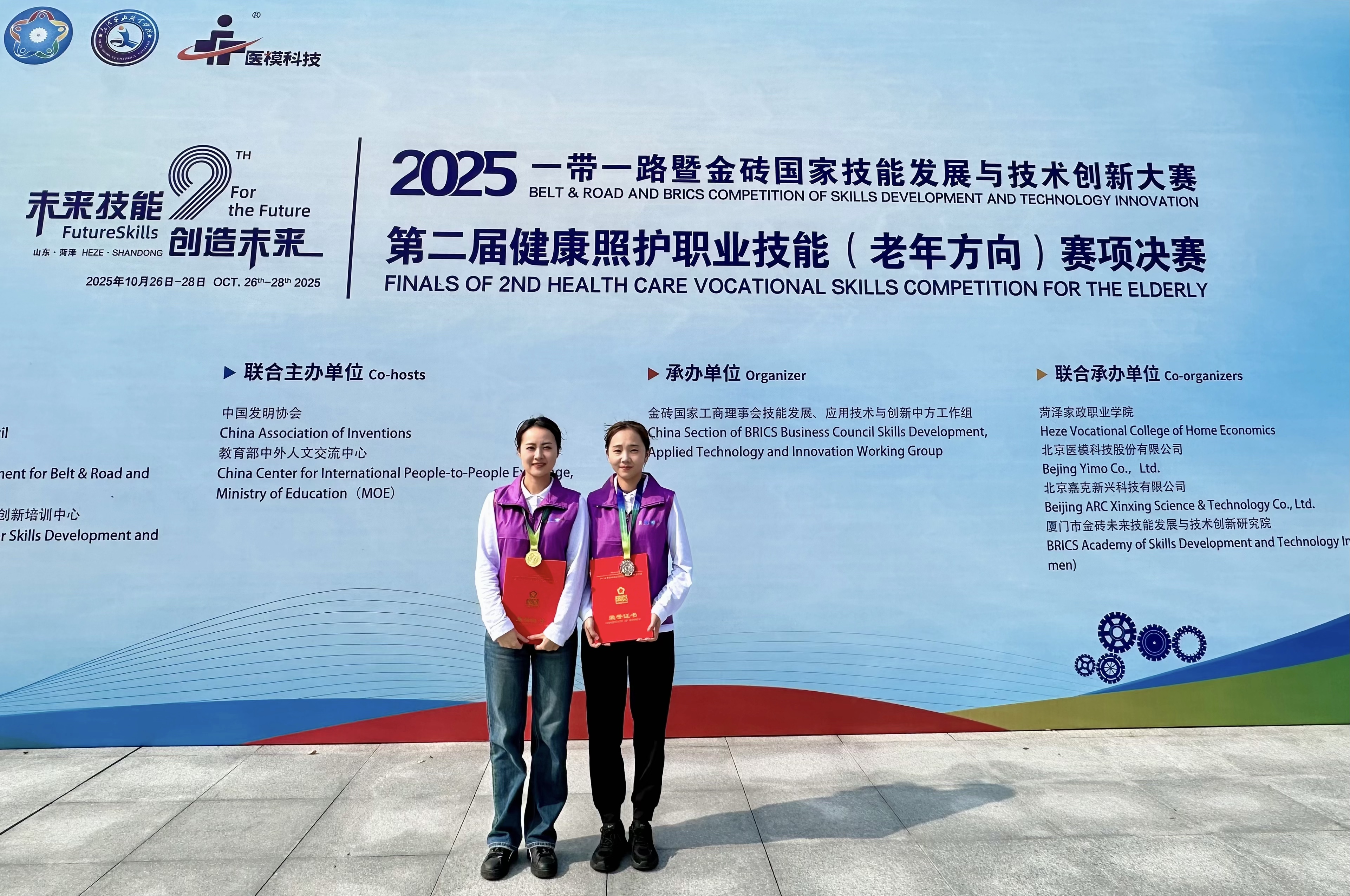 10月25日至28日,2025一带一路暨金砖国家技能发展与技术创新大赛第二届健康照护职业技能(老年方向)赛项在菏泽家政职业学院举行。我校首次组织教师参加该项赛事,护理系教师严淑晗、姜肖宇与来自全国各地本科、高职、中职院校的28支队伍同台竞技,凭借扎实的专业基础、精湛的照护技能和卓越的综合素养,最终分别获得一等奖、二等奖,学校获最佳组织奖和优秀组织奖,充分展现了学校在健康照护领域的教学实力。
