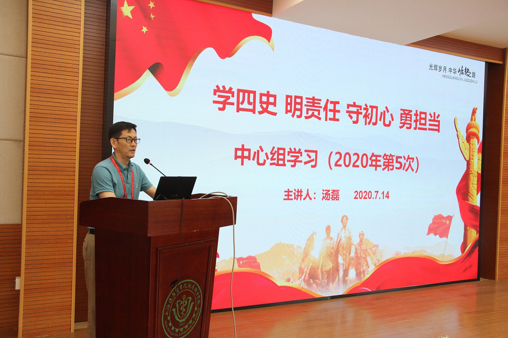 会议首先由校长汤磊作《学四史 明责任 守初心 勇担当》主题报告。汤校长用习近平总书记的一段话引出了学习“四史”的大背景:“要把学习贯彻党的创新理论作为思想武装的重中之重,同学习马克思主义基本原理贯通起来,同学习党史、新中国史、改革开放史、社会主义发展史结合起来,在深化认识中提高认识,切实增强贯彻落实的思想自觉和行动自觉。”他从了解“四史”学习的背景和目的、理清“四史”学习的内涵和关系、掌握“四史”学习的方法和途径、学习党史,庆祝建党99周年四个方面展开领学。报告中他提到:“学习党史、国史,是坚持和发展中国特色社会主义、把党和国家各项事业继续推向前进的必修课。这门功课不仅必修,而且必须修好。”他用三个“为什么”深入浅出地回答了 “四史”学习的内涵和关系:他提到学习1921年中国共产党成立至今近一百年的历史,基本上就能弄清楚现代中国诞生的全部奥秘,弄清楚中国后来居上的根本原因,明白只有共产党才能救中国、只有共产党才能发展中国;讲新中国史就是为了让人们更真切感受什么是当家作主,领悟党诞生的意义;改革开放是中国共产党带领人民开启的一次伟大革命史,学习改革开放史就是要感知中国式现代化的关键一招是怎么产生的;党史、新中国史、改革开放史都是纯粹的中国故事,然而中国故事并非只是中国的故事,而是世界故事——科学社会主义事业中的一个部分,不讲社会主义发展史,就会淡化中国的发展、中国的和平崛起之世界意义。最后他为大家梳理了党史的时间脉络,并用短视频形式把那些影响深远的重大事件与党员、干部们共同回顾党史的恢弘篇章。他希望广大党员、干部利用学习平台资源多花精力,全面系统学,及时跟进学,深入思考学,联系实际学。