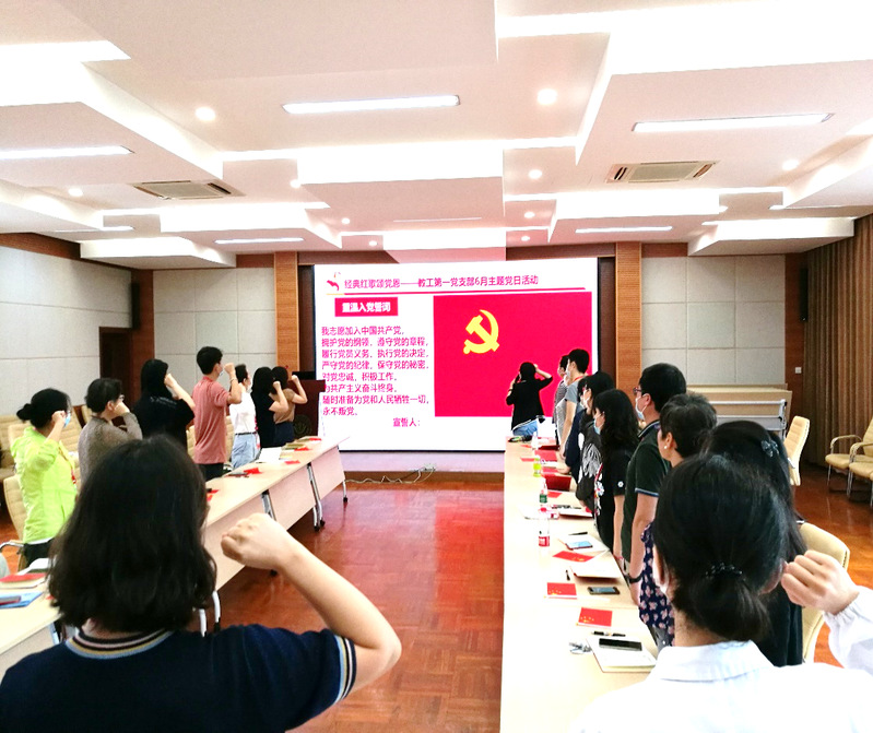宣誓完毕,朱彩英书记对本次主题党日活动进行总结,通过回顾党史,重温红色歌曲,我们回顾了党从诞辰以来中国共产党的辉煌历史,爱国人士用时代的经典红歌让我们感受到了当年奋斗的豪情壮志与生动场面。他们用红歌讴歌了党的辉煌历程和丰功伟绩,唱响中国人民团结一心、努力激发党员们的爱国、爱党、爱校的热情。