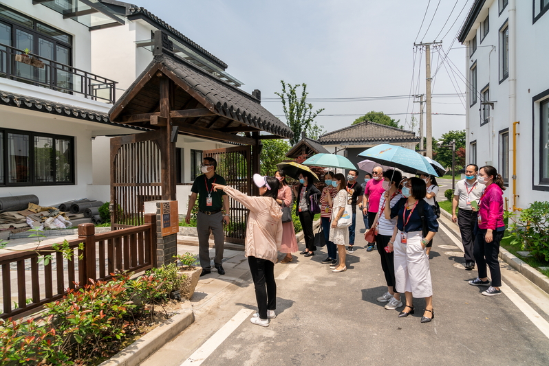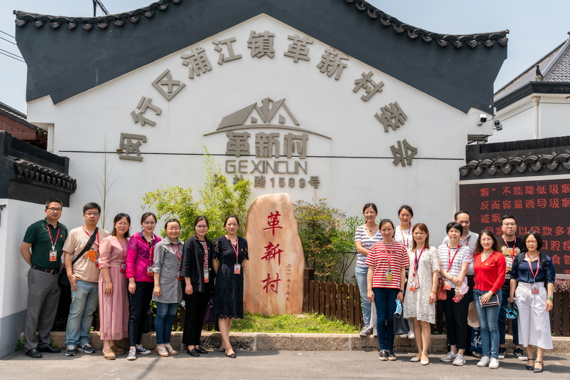 接着我们参观了浦江镇革新村,作为上海市第一批乡村振兴示范村中唯一的中国传统村落,革新村以“推进农民集中居住”为试点,引入物业、集体养老模式,探索产业兴旺、治理升级等全面农村振兴。整齐规划的村容村貌让我们感受到了社会主义新农村建设的生机和活力。而革新村新时代文明实践站以“党建引领+文明实践+志愿服务”为主线,推进场所、队伍和项目三大要素的整体提升,实现新时代文明实践阵地、队伍和活动的全领域覆盖。为党建工作提供了一个新思路,也让我们受益匪浅。