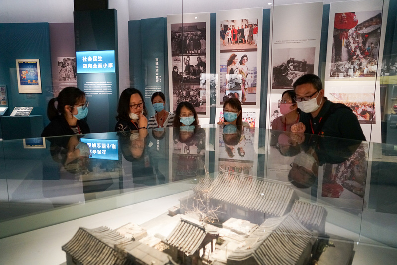 首先我们来到奉贤区博物馆,怀着崇敬的心情观看了“追梦前行——共和国现代化之路”展览,该展览借物述史,寄情于物,讲述了新中国成立70多年来历史性飞跃和发展。一件件老物件,见证了新中国现代化发展历程,党员同志们纷纷驻足仔细观赏,在展品中学习新中国70都念发展的成就,也让我们感慨万分,中华人民共和国成立后特别是改革开放40多年来,中国大踏步进入工业化时代,用几十年的时间走过了西方发达国家几百年走过的路,建立起完整发达的现代工业体系,取得了举世瞩目的成就,走出了一条独具中国特色的现代化之路,国家的经济社会面貌发生了巨大变化,中华民族迎来了从站起来、富起来到强起来的历史性飞跃,迎来了实现中华民族伟大复兴的光明前景。