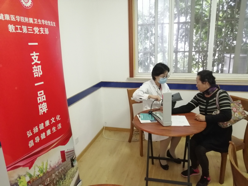 10月22日,上海健康医学院附属卫生学校教工第三党支部的党员们在支部书记的安排与带领下,前往书香苑小区的老年活动室,为社区的老年人开展志愿服务,利用自身的专业优势,为社区居民进行血压测量,带领他们做颈椎操,并开展了简单的健康咨询。