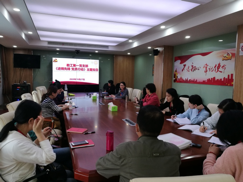 10月27日中午,教工第一党支部在行政楼210会议室召开《进博先锋 党员行动》的主题党日。教工第二党支部书记陈莹桦,教工第三党支部书记张丽华、教工第三党支部纪检委员邹丽萍列席。