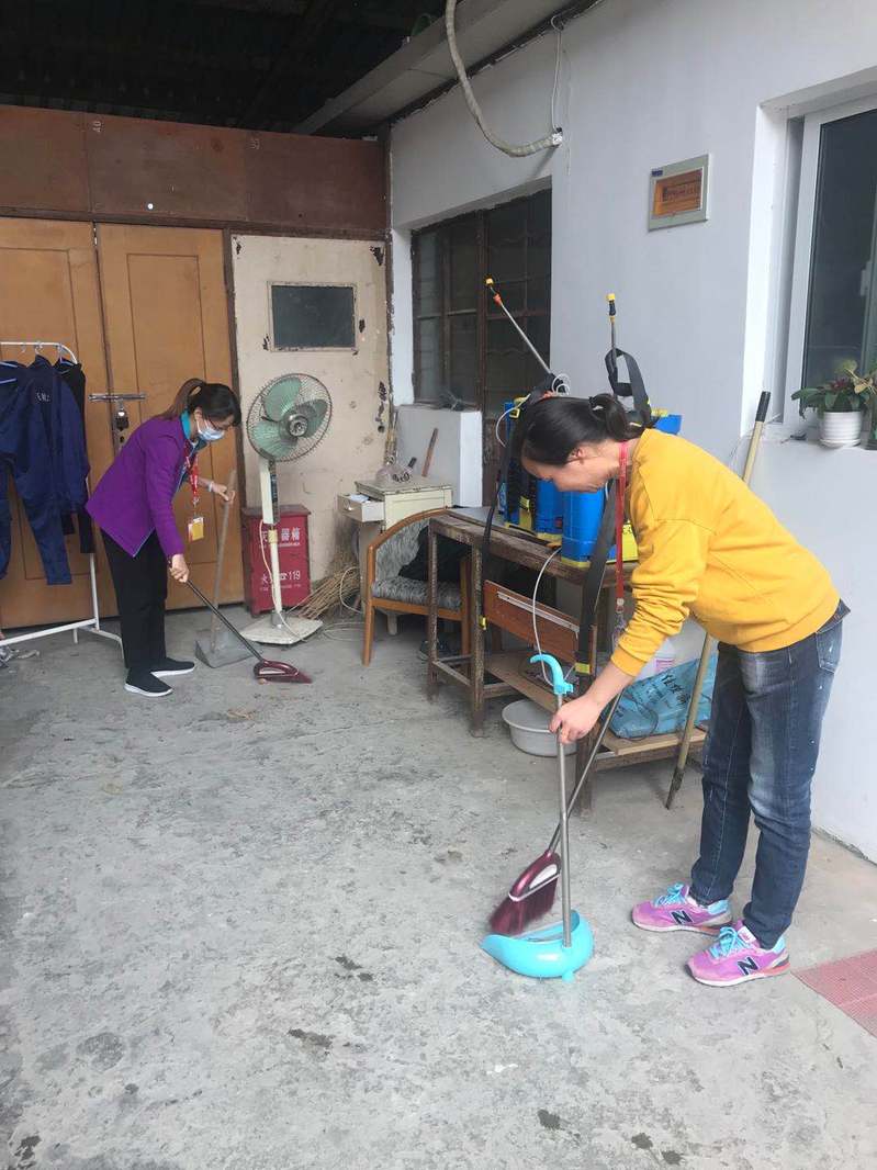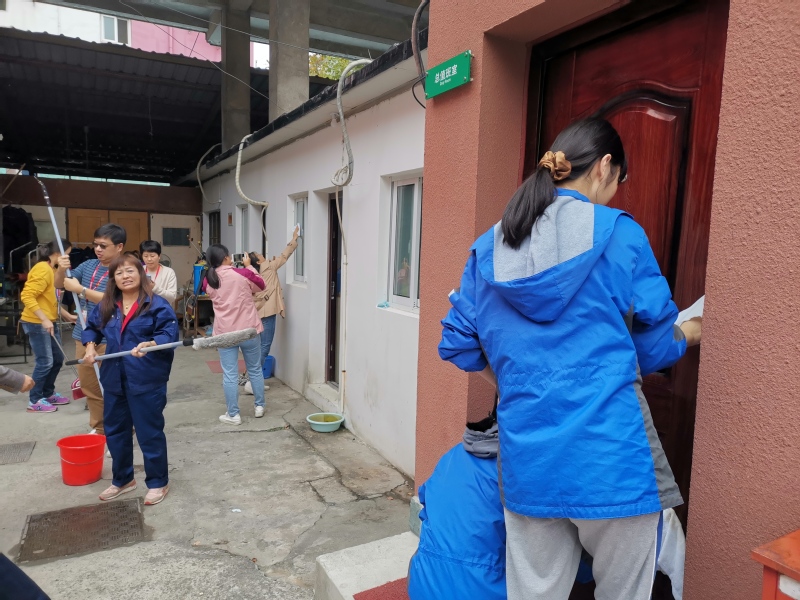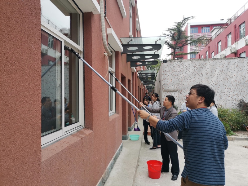 接着党员同志与牵手的学生团支部进行了对接,共同开展劳动,对卫生死角、学生活动区域的门窗进行了清扫。