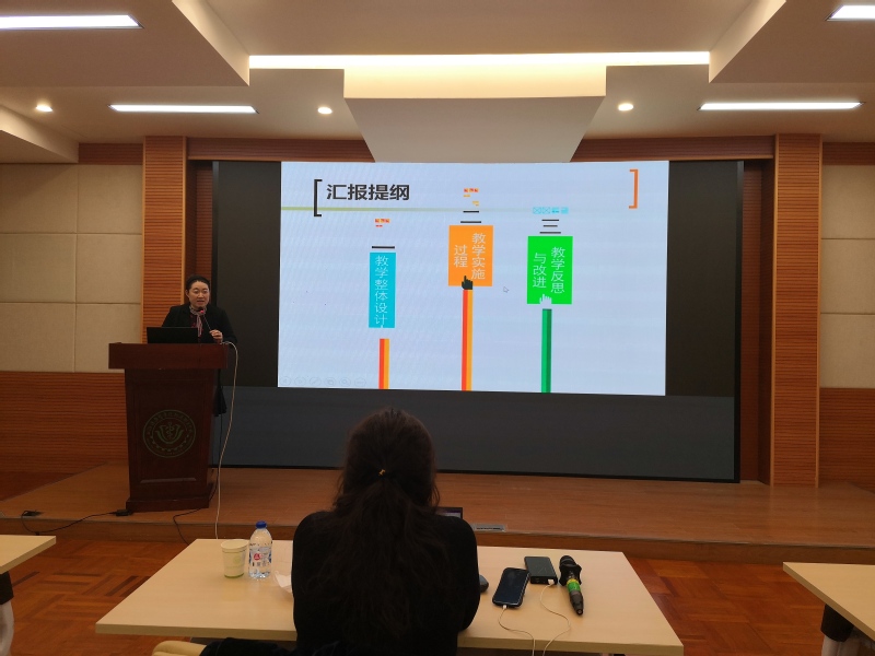 作为结业仪式的展示环节,5位新进教师就本年度培养专题“教学实施报告”,从整体教学设计、实施成效、反思与改进三个方面作现场汇报。前期新进教师经过专家讲授“学”、案例讨论“思”、总结撰写“践”,对教学实施报告有了切身体验,今天经过现场陈述、专家提问回应、点评交流等互动,有了进一步的“悟”。专家应老师从教学实施报告的概念、内容、要点等几方面进行了详细深入的解析,帮助新进教师对如何写好教学实施报告有了更清晰的理解,对学科教学理念有了更深刻的思考。她指出,好的教学实施一要有教学逻辑,二要体现学科育人价值,三要真正研读好课程标准和人才培养方案,公共基础课教师要从专业中寻找和自己学科的融通点。