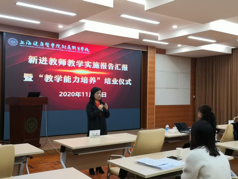 11月23日下午,我校新进教师教学实施报告汇报暨教学能力培养结业仪式在报告厅二楼举行。上海市教育委员会教学研究室专家应宏芳、校党总支书记、常务副校长钱艳、副校长徐敏、各系部相关领导、教研室主任、带教老师和新进教师出席结业仪式,质量管理与教学建设中心主任陈碧英主持。