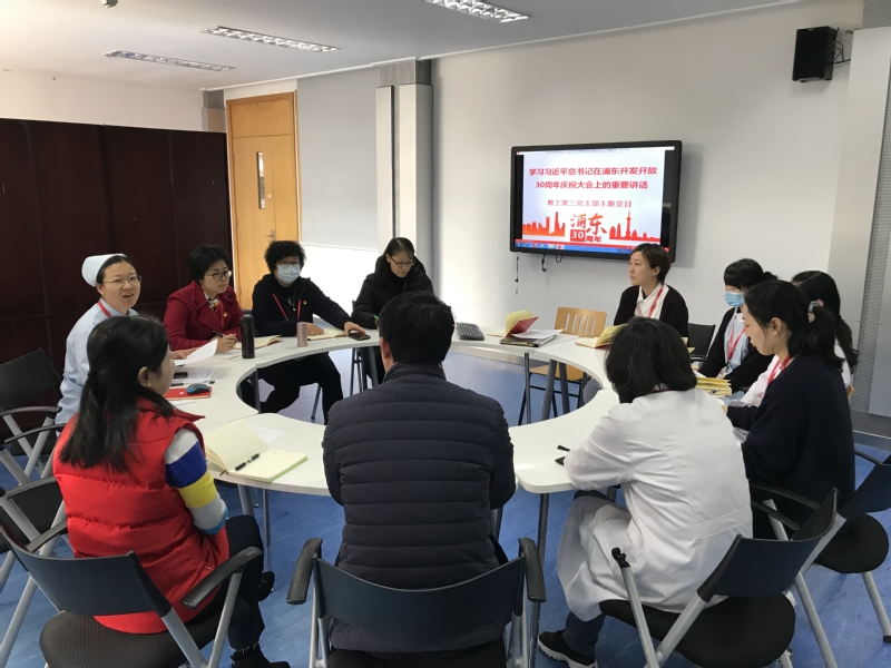 主题党日由党支部书记张丽华主持,从三方面进行了解读:浦东开发开放30年,取得了举世瞩目的成就。经济实现跨越式发展,改革开放走在全国前列,核心竞争力大幅度增强,人民生活水平整体性跃升。目前浦东所处的历史方位,从国内看,是我国全面建成社会主义现代化强国的30年。从全世界看,世界正经历百年未有之大变局。浦东新的历史使命,要从自主创新、改革开放、统筹国内国际市场资源、推进城市治理等多方面,努力成为更高水平的开路先锋、全面建设社会主义现代化国家的排头兵,更好向世界展示中国理念、中国精神、中国道路。目前,我校正处于发展的重要时期,每位教师都要树立强大的发展意识,共同激发出学校发展的内驱力。作为护理专业教师,要注重护理教学模式的创新,要以学生为中心,把护理理论与临床护理实践紧密结合,促进学生综合素质的提高,才能为相关医疗机构输送更多顺应时代发展的实用型护理人才,为护理事业的发展做出更大的贡献。