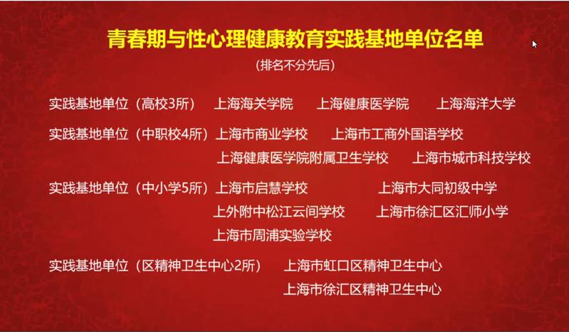 2月8日上午9:30,在线上ZOOM会议室举行以主题为“身心协同 青春启航”上海市心理学会青春期与性心理教育工作委员会成立大会暨首届学术年会。会上,上海市心理学会秘书长刘俊升教授为首批十四所上海市心理学会青春期与性心理健康教育基地挂牌,我校成为首批实践基地单位之一。