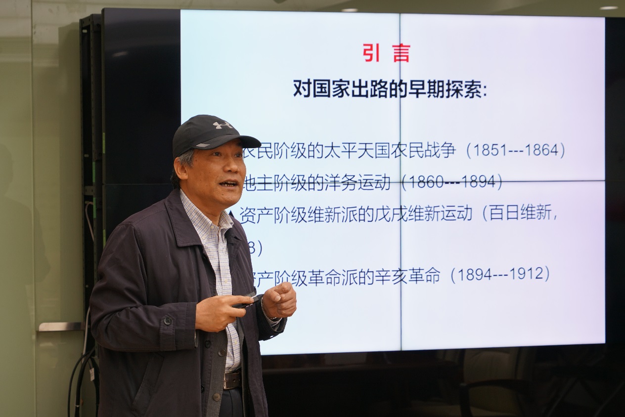 随后,学校关工委刘宏正老师做《开天辟地的大事变—中国共产党的诞生》的专题学习导读。刘宏正老师结合自己的学习体会,从“新文化运动和五四运动”、“马克思主义进一步传播与共产党诞生”、“中国革命的新局面”三个章节生动讲述了中国共产党百折不挠艰辛求索的伟大历程,再现了中国共产党成立这一开天辟地大事件。刘老师幽默风趣的语言,独特的见解,让这一段耳熟能详的历史再一次生动地呈现在大家面前,一个半小时的时间一晃而过,在座的党员同志再一次深深地被吸引了,跟随着刘老师的讲解,一起探初心,知使命,理解“开天辟地”的深刻含义。体会中国共产党成立一百年来,高擎马克思主义真理的火炬,指引中华民族走向复兴航程的光荣使命。