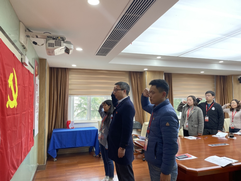 会前首先举行了姚俊杰、宋俐霄两位预备党员入党宣誓活动,全体党员奏唱国际歌后,由朱聿璜带领两位预备党员入党宣誓,全体党员一起见证并重温入党誓词。