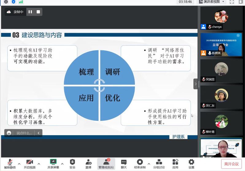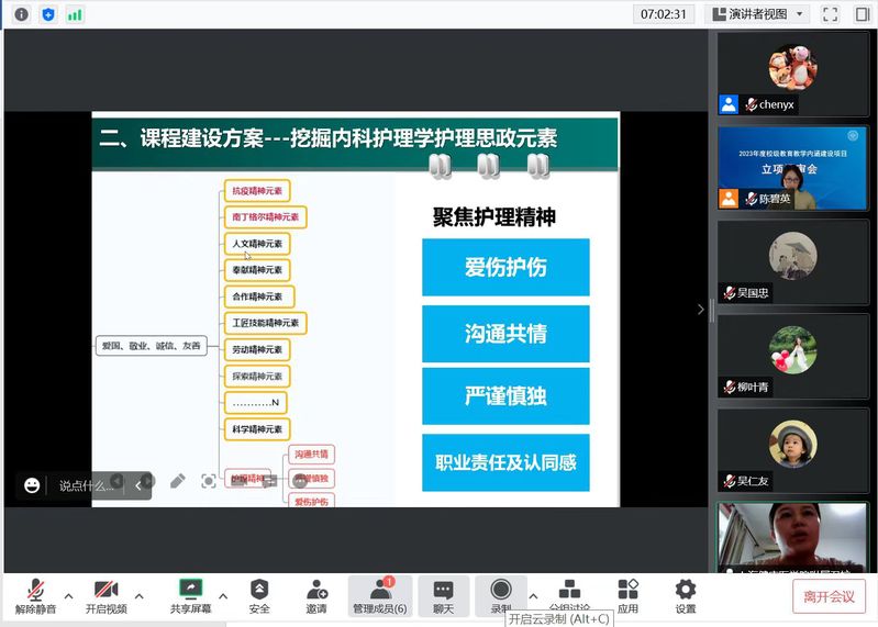 专家指出:一是课题研究选题要贴切,忌大而空,宜小而实,避免选定的课题起点低、盲目性大;二是课题研究在选择研究内容时,应聚焦一条主线,系统思考,选择有效的研究方法;三是挖掘思政元素应凸显专业特色,注重思政教育与专业教育有机融合,参考新课标,加强挖掘课程本身的思政元素;四是要准确表述课程教学目标,恰当处理素养目标与思政育人目标之间的关系,系统设计思政目标和确定思政主题是课程思政的核心内容;五是教学内容应与课程思政有机结合,在提炼思政元素时,建议按照教学内容模块化梳理,有利于把控教学内容与思政元素之间的关联性。各项目申报负责人表示对建设思路和建设内容有了更加清晰明确的认识,后期将对申报材料进行修改和补充,进一步丰富研究内容,细化研究步骤,使项目更具建设意义和可行性。