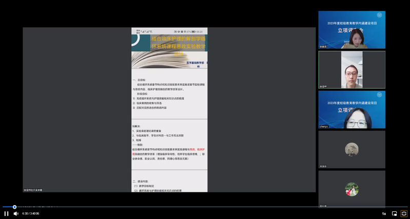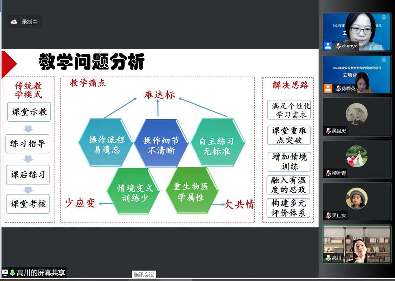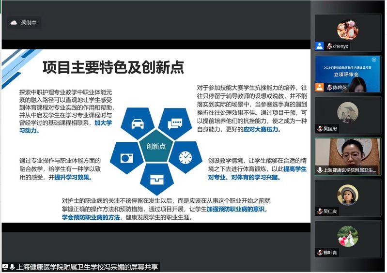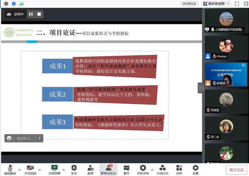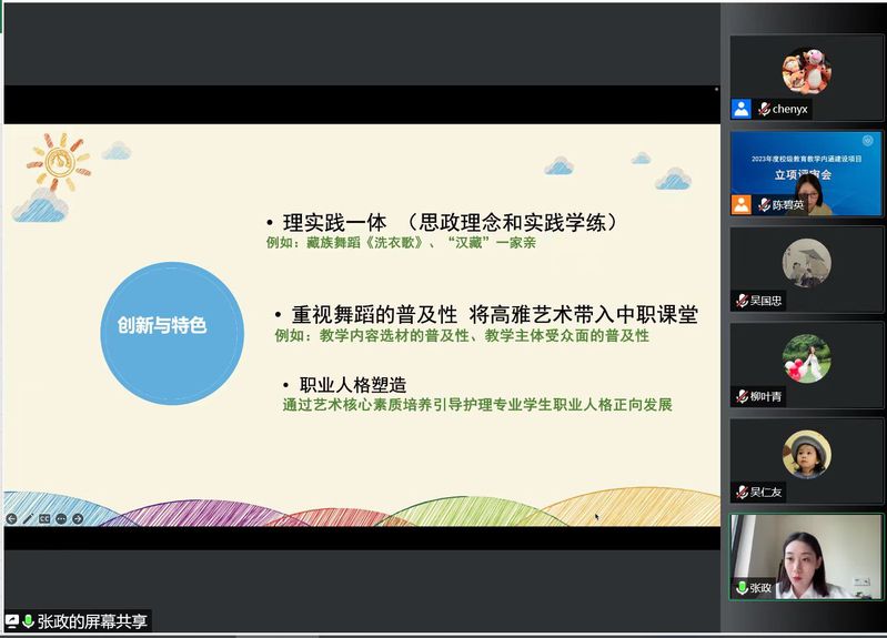为深化学校教育教学改革和课程思政建设,9月7日,2023年度校级教育教学内涵建设项目立项申报评审线上会议顺利举行。特邀上海交通大学医学院吴仁友、上海市教育委员会教学研究室柳叶青、上海杉达学院吴国忠三位医学和职教领域专家担任评审。会议由质量管理与教学建设中心主任陈碧英主持。