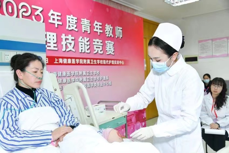 2023年3月17日,由上海健康医学院附属卫生学校主办,上海健康医学院附属卫生学校护理系承办,上海市中等职业学校医学类专业中心组协办的技能竞赛活动——2023年度青年教师护理技能竞赛拉开帷幕,来自护理系七名青年教师参赛,大赛邀请了总分校护理专业教师一同观摩学习。