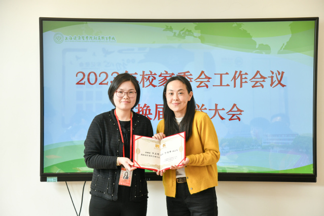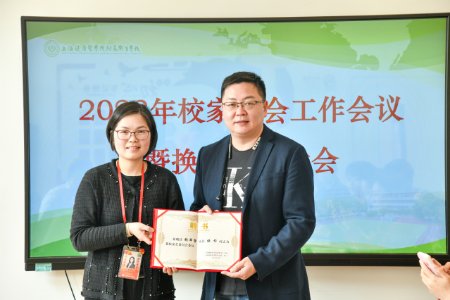 赵欢宣读新一届学校家长委员会名单,宣布新一届校家长委员会正式成立,并为各位校家委会委员颁发聘书。