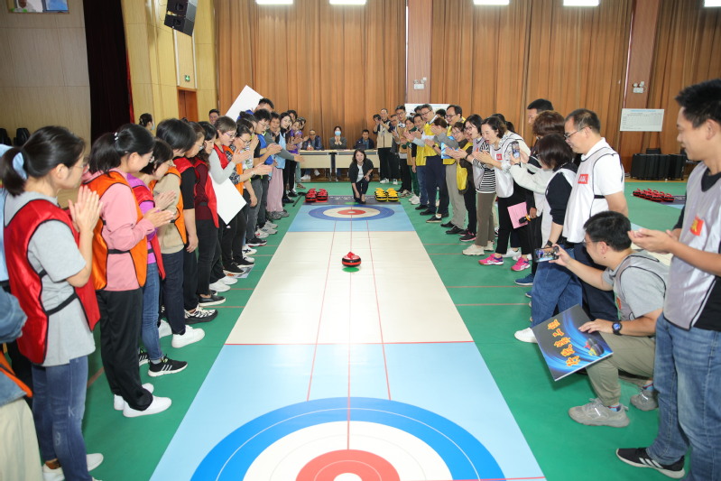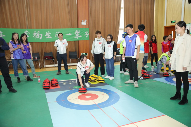 10月23日中午,2023年学校教职工趣味运动会在学校大礼堂顺利举办。本届运动会以“阳光运动,健康你我”为主题,以旱地冰壶为比赛项目,旨在丰富教职工文体活动,加强运动意识,凝聚团队士气,促进身心健康。党总支书记、常务副校长钱艳,党总支副书记臧圆圆,以及来自五个部门工会的领队、运动员和教职工代表参加。