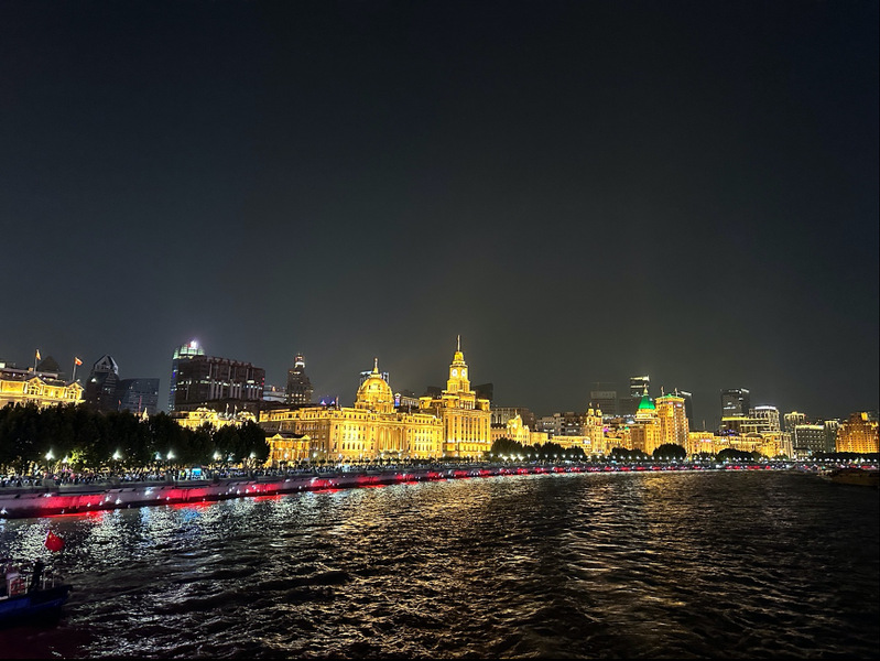 到了晚上八点,大家登上“君子兰”游船,从十六铺码头出发,沿滨江水岸,听黄浦码头初心启航故事,看昔日老厂房旧址蜕变,在讲解员的细心讲解下,使大家了解到了建筑背后的红色文化,重温了一段段波澜壮阔的红色历史。