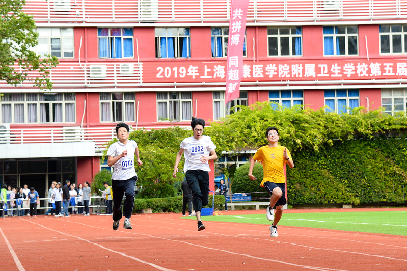 随后,开始了场面壮观的学生广播操比赛。接下来,踏板操、花样跳绳的表演给观众带来了不同的感受。时尚动感的踏板操表演,让人感受到了青春的力量、创造的激情;花样跳绳的特技展示,表现出了韵律之美、力量之美、气势之美;尽显卫校学子风采。特邀而来的上海工商外国语学校的竹竿舞快乐、活泼的节奏和鲜艳的民族服装给开幕式增添了一抹亮丽的色彩。紧接着就进入正式的比赛项目。本届运动会的比赛项目分别为:个人项目的男子100米、女子100米、男子1000米、女子800米、男子实心球、女子实心球、男子立定跳远、女子立定跳远以及团体项目的男子4*200米、女子16*30米和团体广播操比赛。