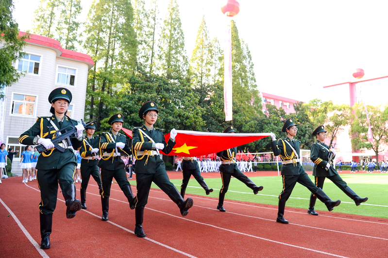 在庄严的国歌声中,五星红旗冉冉升起。党总支副书记朱文娟致开幕词,她指出此次运动会是对学生综合素质的一次全面检阅,也是对我校运动水平的一次集中展示。她希望全体运动员遵守规程、顽强拼搏,赛出风格、赛出水平、赛出友谊;也希望大家在运动中享受乐趣、增强体质,在运动中健全人格、锤炼意志,从而拥有健康的体魄,享受精彩的人生;更希望大家能够把运动中激发出来的奋斗激情汇聚成推动学校高质量发展的精神动力,为加快建设“厚德至善 健行康民”新卫校做出新的更大贡献!钱岳金秘书长代表上海市中专体协向我校运动会的成功召开表示了热烈的祝贺,肯定了我校始终把提升学生健康素养和体质健康水平摆在重要位置。在运动员代表和裁判员代表宣誓之后,校党总支书记、常务副校长钱艳宣布运动会开幕,伴随着气球放飞,犹如朝霞的青春,迎风展翅。