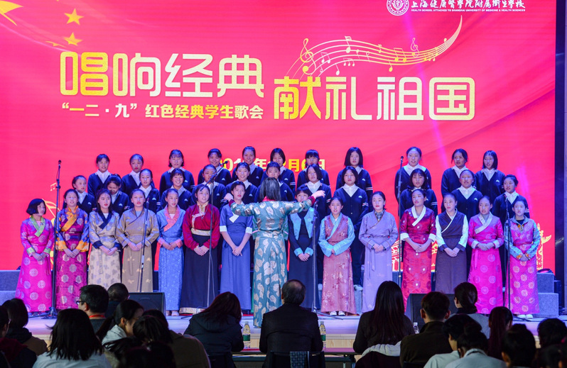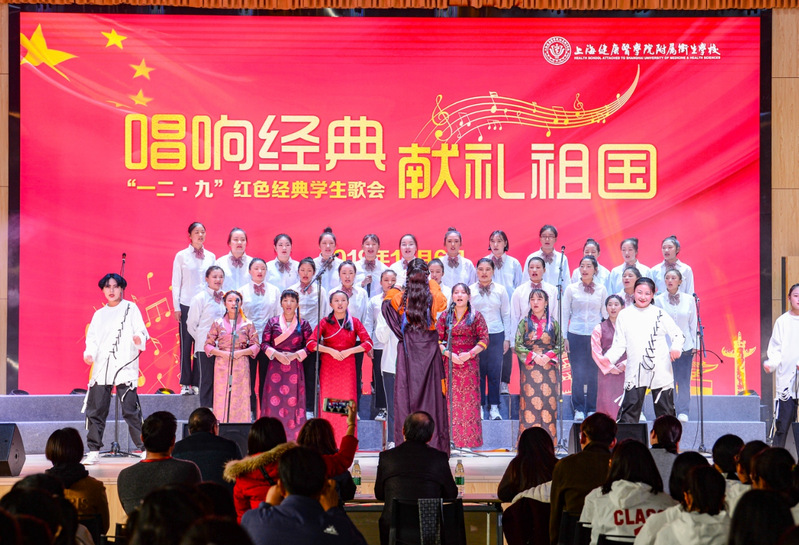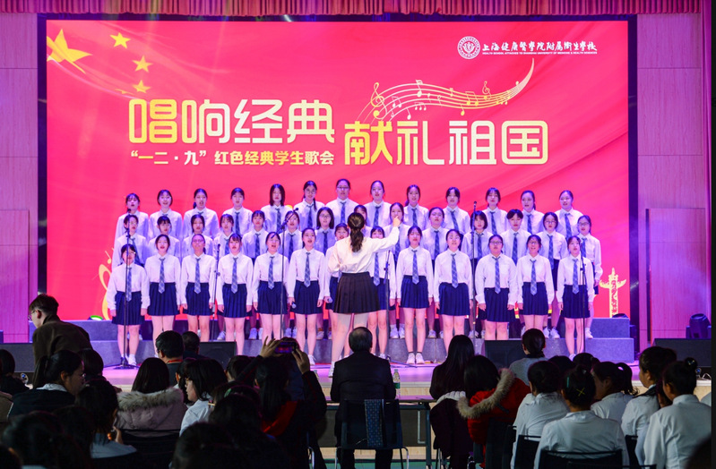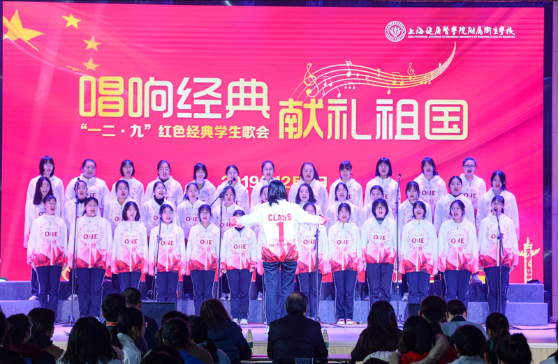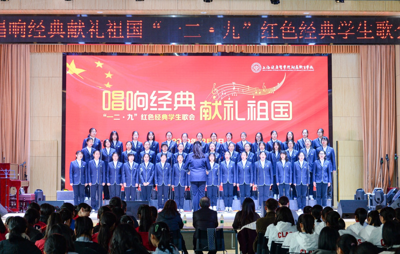 在迎来“一二•九”运动84周年之际,为了加强我校精神文明和校园文化建设,增强同学们的爱国主义情怀,12月6日下午,在学校大礼堂隆重举行《唱响红歌 献礼祖国》“一二·九”红色经典学生歌会。此次红歌会,我们诚邀中国职业技术教育学会德育工作委员会副主任、美育研究中心主任刘五华、中国职业教育学会德育工作委员会美育研究会副主任和秘书长、上海市中职公共艺术名师培育工作室主持人周婕、上海市教委教研室艺术学科中心组长徐影以及体育艺术教学部主任倪益、艺术教研室朱华英出席并担任评委。经过初赛选拔,共有11支队伍进入了本次决赛。