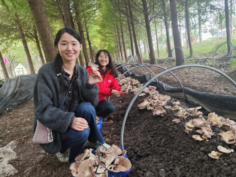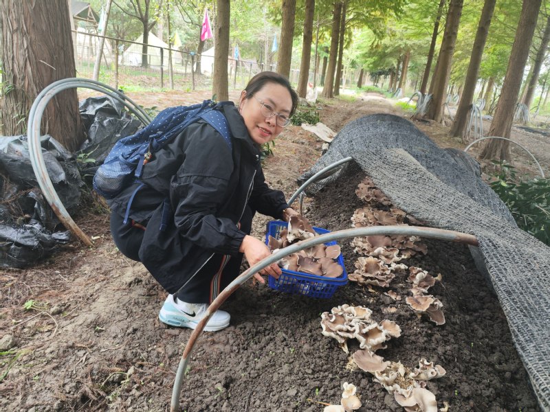 清晨九点,阳光和煦,满载着欢声笑语的大巴车准时从金山卫校出发,驶向本次活动的第一站——金山联中食用菌基地(蚂蚁蘑菇学院)。一踏入基地,湿润清新的空气夹杂着菌菇特有的芳香扑面而来,瞬间将大家从都市的喧嚣中带入了一片生机勃勃的“蘑菇王国”。在专业讲解员的带领下,大家认真聆听了关于菌菇种植的科普小知识,从菌种的培育、生长环境到各类菌菇的营养价值,生动有趣的讲解让大家对餐桌上常见的美味有了全新的认识。随后的亲手采摘环节更是将气氛推向高潮,大家提着小篮,穿梭于菌床之间,小心翼翼地寻找、采摘那一朵朵肥硕鲜嫩的蘑菇,收获的喜悦洋溢在每个人的脸上。
