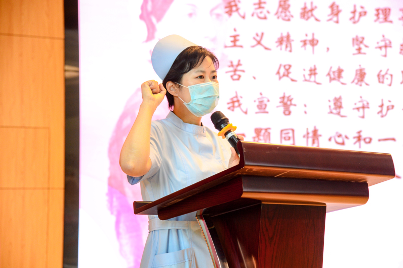 仪式上,96级校友严翠丽发表了热情洋溢的讲话,讲述“逆行”之役,鼓励大家继承发扬南丁格尔精神,爱岗敬业,加强业务能力,参加志愿者活动,为护理队伍增添新鲜血液。