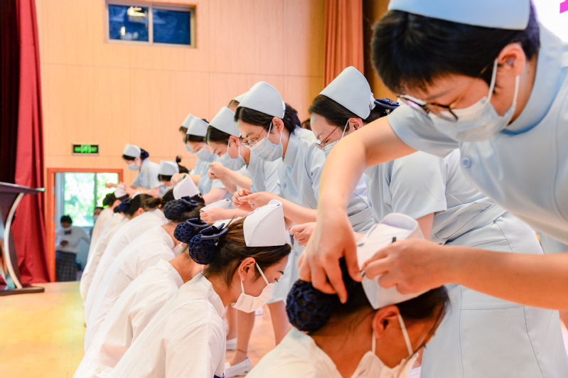当季节走进生机盎然的五月,当枝头已变得葱翠欲滴的时候,我们迎来了第109个国际护士节。为铭记南丁格尔对护理事业的无私奉献,弘扬与继承护理行业前辈优良的传统美德,5月12日,一场特别的授帽仪式在上海健康医学院附属卫生学校大礼堂二楼举行,内地西藏中职班的同学家长远程直播观看,上海学生晚上在家观看授帽传光仪式录像。学校领导、职能部门、护理系教师代表,2020届毕业生代表参加了这次活动。活动邀请了来自复旦大学附属上海第五人民医院、周浦医院、大华医院的护理部主任、护士长以及援鄂护士代表共同为未来的白衣天使们授帽,同时分享了她们的战役故事和专业心得。