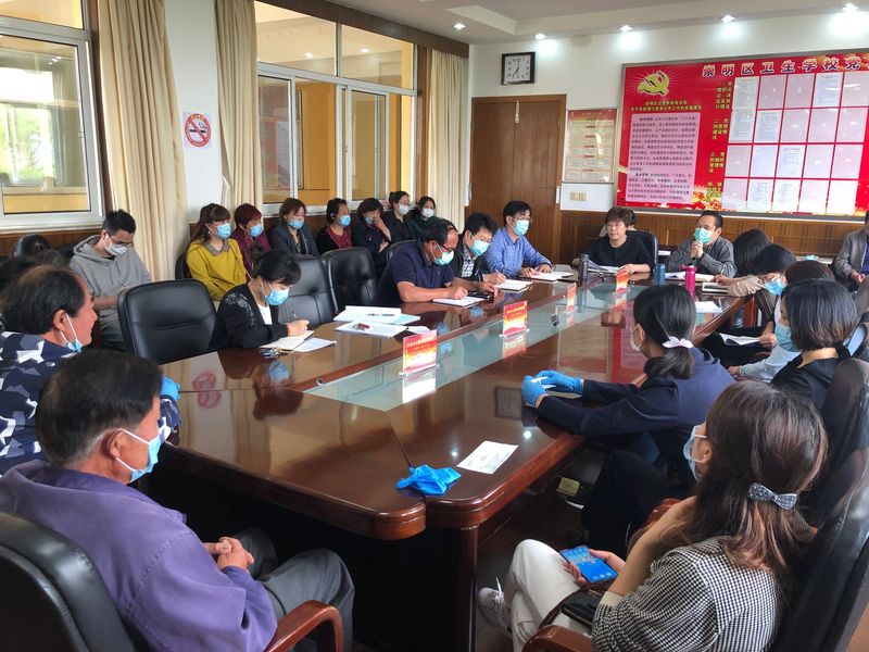 贯彻习近平总书记对新型冠状病毒肺炎疫情作出的重要指示精神,根据上海市教委下发的《上海市高等学校和中等职业学校防控新型冠状病毒肺炎疫情开学工作指南(修订版)》(上教委办[2020]7号)要求,以总校“开学工作方案”为指导,我校17级贯通班学生拟定于5月17日返校。为确保突发状况能够立即响应,学校在5月10日下午召开全校教职工(包括清洁员和保安)全体会议,并进行应急演练,确保学生顺利返校。