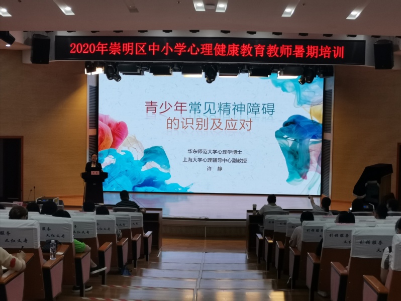 随后,由上海大学心理辅导中心专职咨询师许静副教授为全体参训教师作《青少年常见精神障碍的识别及应对》专题报告。下午,崇明区未成年人心理健康辅导中心主任顾玉娟首先作《崇明区高危和重点关注学生心理干预方案》辅导。最后,由积极教育(中国)中心主席、华东师范大学心理与认知科学学院席居哲教授作《中小学生心理危机的预防与干预》专题辅导。