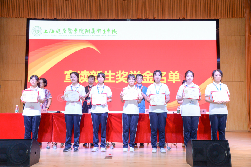 为激励有志青年献身医学事业,鼓励品学兼优学生报考我校,进一步提高学校生源质量,自今年起学校特别设立了“新生奖学金”,今年共有15位新生获此殊荣。党总支副书记朱文娟宣读了获奖名单并勉励她们再接再厉、百尺竿头更进一步,全体同学要以受表彰同学为榜样,奋起直追,争创佳绩。随后,全体校领导为获奖学生颁发了荣誉证书。