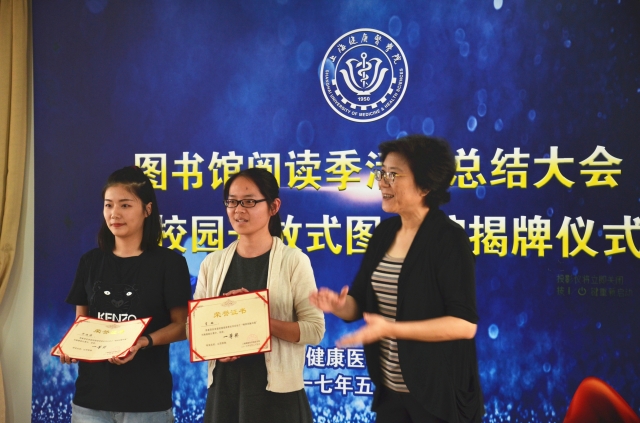 于莹代表郑书记和黄校长祝贺学校首届阅读季活动圆满结束,祝贺校园开放式图书馆正式启动,感谢图书馆老师的辛勤付出和各学院老师们的支持。她指出,开放式图书馆完全是一种自由地存放、借阅状态,这在大学里是首创,希望有一天,会有更多的同学把自己心爱的图书放到开放式图书馆。