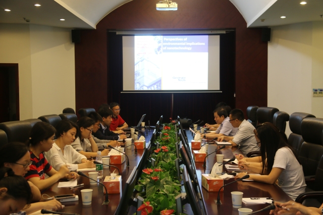陈教授作了题为“Perspectives of environmental implications of nanotechnology”的学术报告,主要介绍了纳米技术的环境应用及健康风险,提出了应用大于风险的宏观结论,他认为在合理的指导下纳米技术应用的健康风险是可控的,纳米技术的最终发展能够造福人类。陈教授还对佐治亚理工学院及美国科研和工业界的一些问题做了概括介绍,指出了大环境健康作为主题的美国科研前沿,赞同了我校在这个世界健康大趋势下的战略眼光和发展契机。