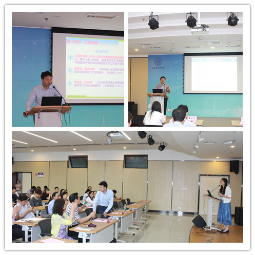 近日,为做好上海市普通高校语言文字工作达标评估,我校特邀上海语言文字工作委员会专职干部姜冠成和上海海事大学教务处处长张秋荣来我校做专题报告。会议由教务处副处长蒋淑敏主持,各职能部门、各学院、教学部负责人与语言文字工作联络人共计70余人参加了会议。