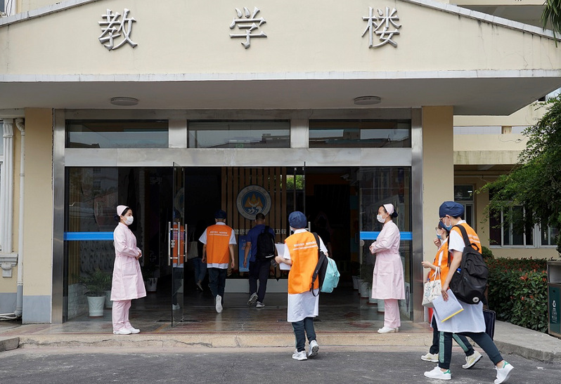 为了保证此次比赛的顺利举行,活动组委会于赛前先后召开了竞赛活动工作布置会、赛前筹备工作布置会等。9月18日,我校召开竞赛筹备专题会,把赛前的准备工作进行了分工,细化到项,责任到人,如考场及会场疫情防控测温消毒工作;考务准备工作及考场参赛队员成绩统计汇总;竞赛项目物品如女性导尿模拟人、留置导尿术模拟人、胸腔穿刺术模拟人、心电图机机心电图纸以及比赛用的辅助材料等准备工作;会议室及表彰会场的准备,搭建远程视频直播系统等,让每位参与者直观感受比赛氛围;比赛场地的物资搬运与整理;学生志愿者的选拔及服装准备等。(金山分校)