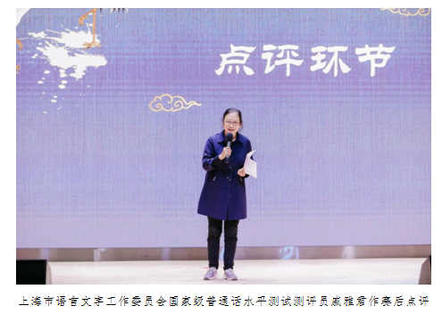 大赛邀请了上海民航高等技术学院语言艺术教授郑洁、上海市语言文字工作委员会国家级普通话水平测试测评员戚雅君、上海信息技术学校基础部主任兼市中职语文中心教研组教研员祝纪景、上海健康医学院团委书记兼艺术指导中心主任顾斐雯、上海健康医学院附属卫生学校艺体部艺术讲师朱华英等语言和艺术专家老师担任评委。评委们结合普通话音准、表演技巧、创意设计、脱稿熟练程度四个打分标准,对进入朗诵吟诵决赛的作品进行严格公正地评审打分。