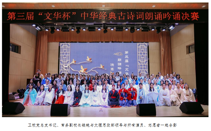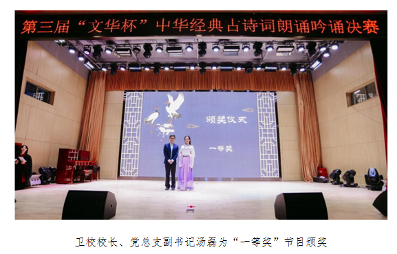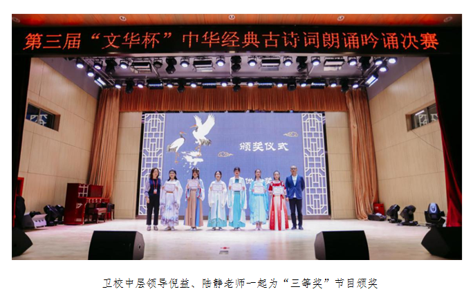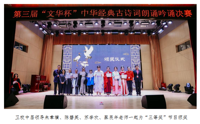 “沉舟侧畔千帆过,病树前头万木春”,历经前两届举办的经验,“文华杯”中华经典古诗词朗诵吟诵的传统现在已经在卫校落地生根,以后也将以常态化举办的趋势,每学年举办一次。“文化育人、活动育人、以赛促学”的传统,必将借助情境“新咏”古诗词的东风,迎来百花齐放、枝繁叶茂的春天。(文理思政教学部)