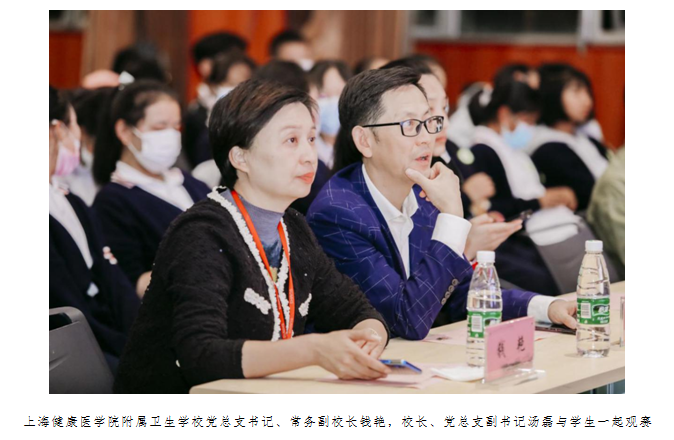 上海健康医学院附属卫生学校党总支书记、常务副校长钱艳,校长、党总支副书记汤磊等校领导及学生科、教务科、职业技能培训中心、质量管理与教学建设中心、体育艺术教学部等部门的中层管理干部一起参加了总决赛,并为获奖同学颁奖。