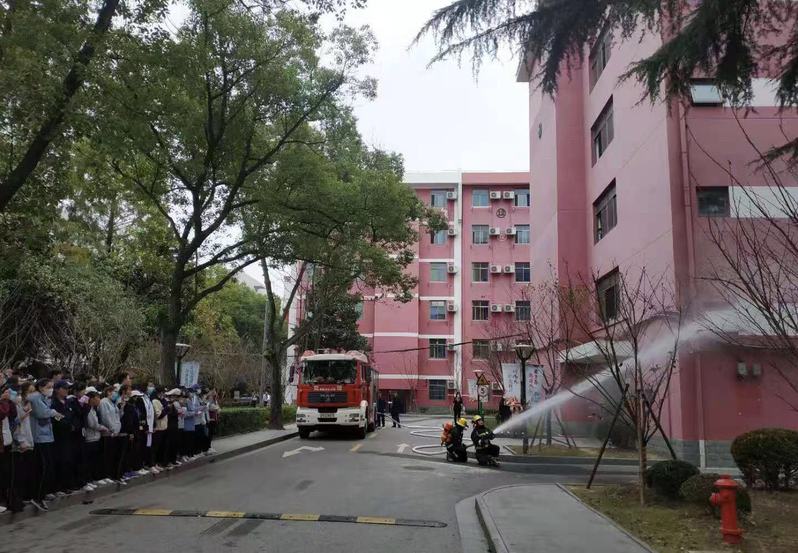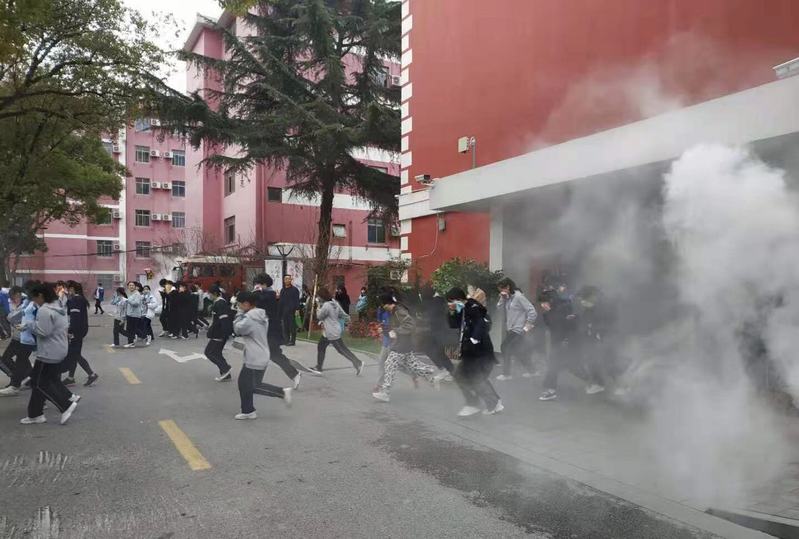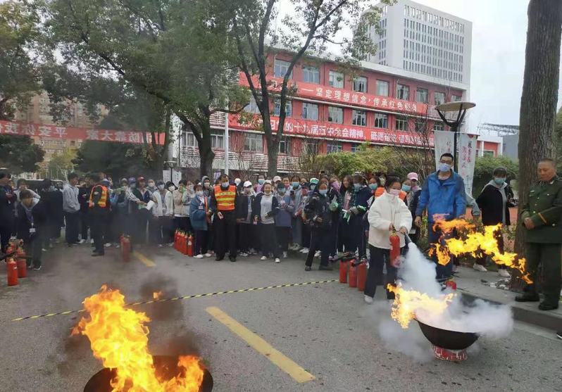讲座结束后,全校学生进行了疏散灭火演练活动。