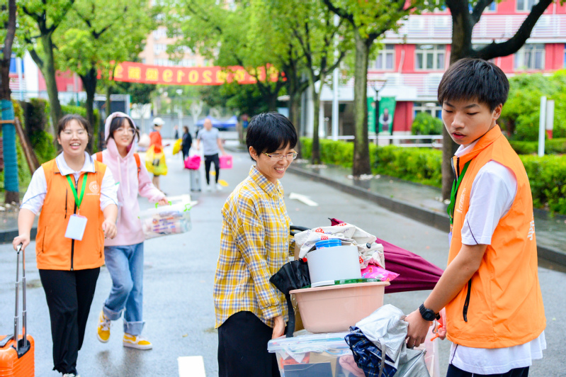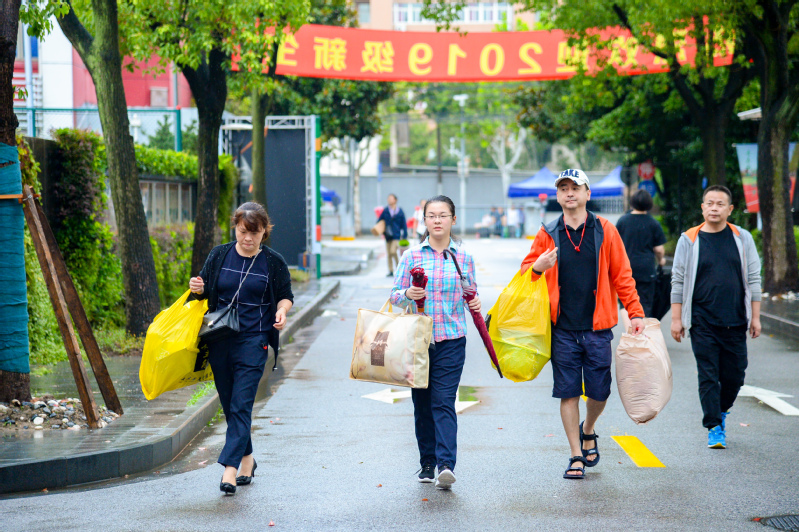 9月1日,在绵绵不断的大雨中,我们迎来了255名2019级新生,在校领导的指导和各部门的通力配合下,克服了因大雨带来的困难,新生报到工作井然有序。校长汤磊、学校党总支书记、常务副校长钱艳、党总支副书记朱文娟亲临报到现场,查看新生报到及入住寝室情况。